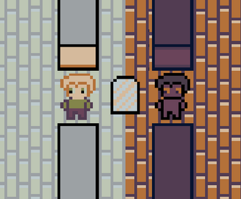 Your evil doppelganger separated from you, reach the mirror together to merge!